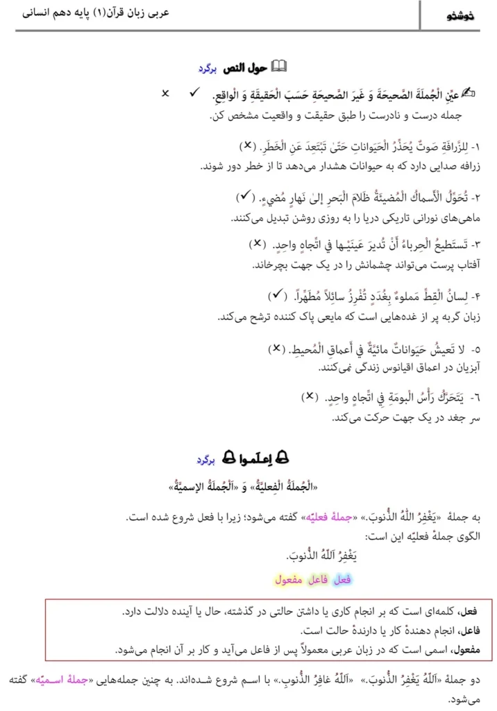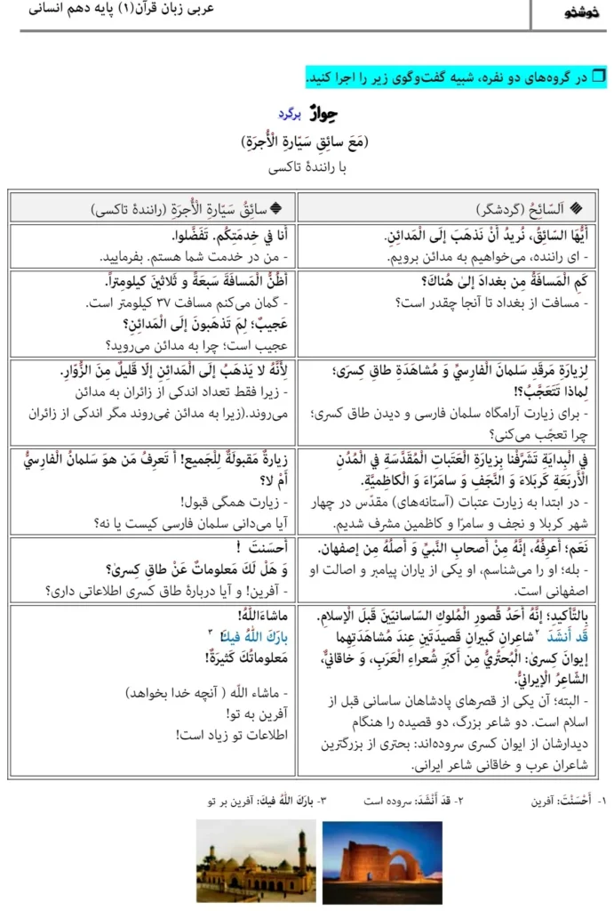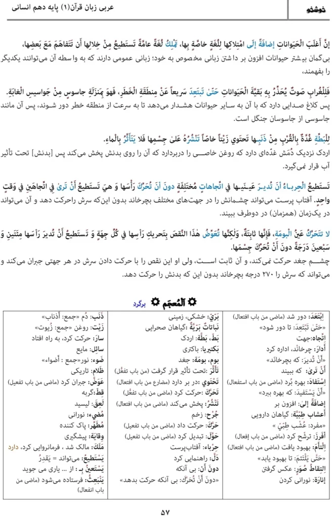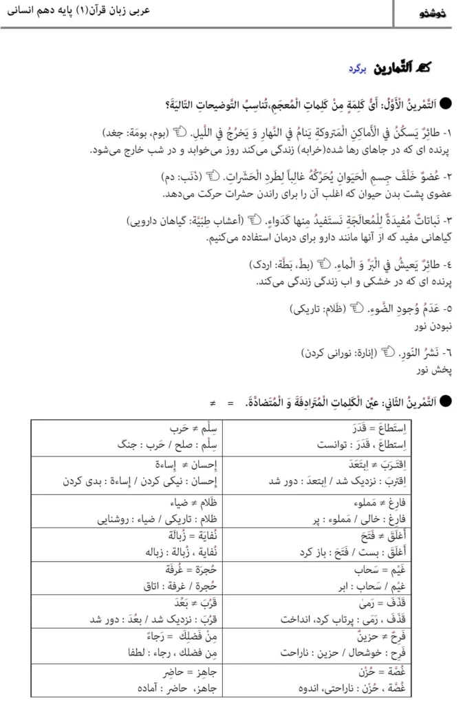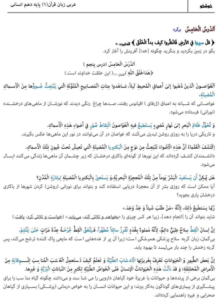 ترجمه و حل تمرین های درس ۵ عربی دهم انسانی