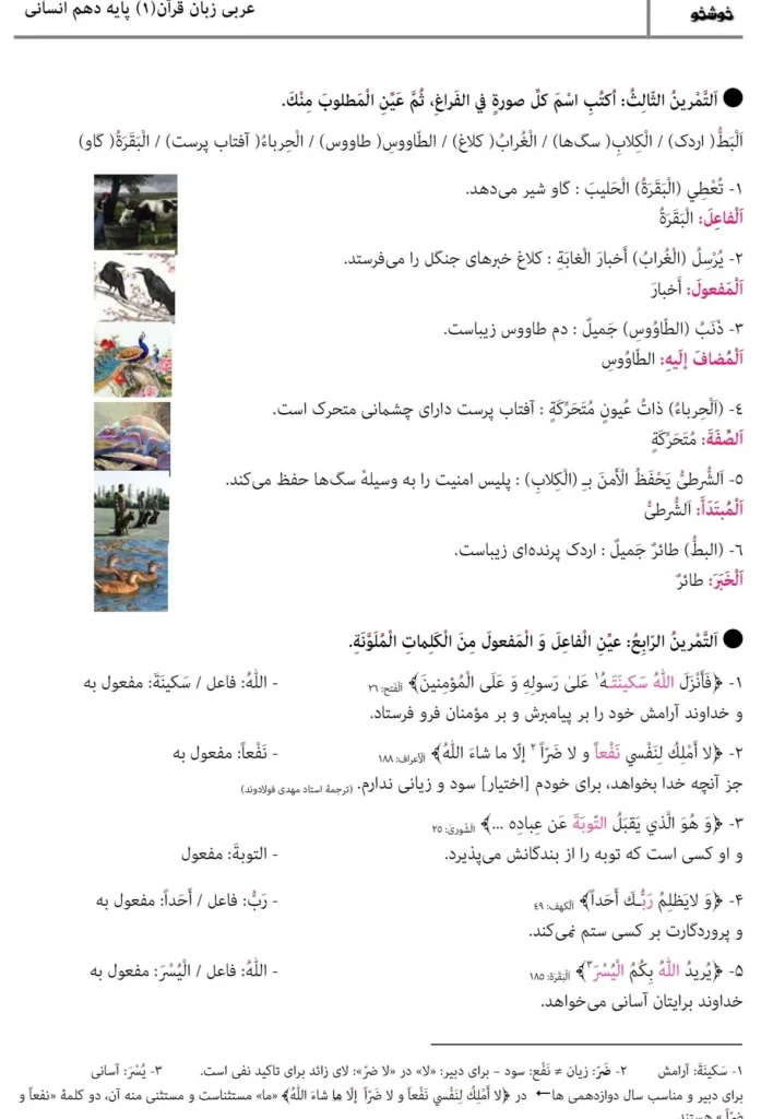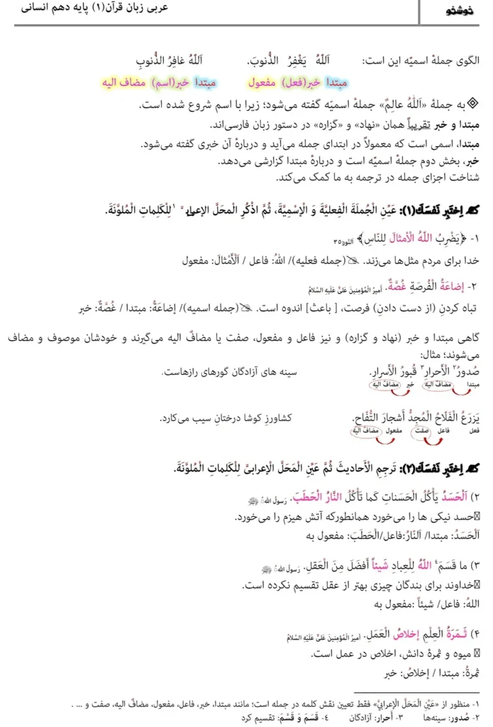 ???? تَرجِمِ الْجُمَلَ التّالیَهَ ثُمَّ عَیِّنِ الْمَحَلَّ الْإعرابیَّ لِلْکَلِماتِ الْمُلَوَّنَهِ. (مبتدأ وَ خبر وَ فاعِل وَ مفعول وَ مضافٌ إلیه)