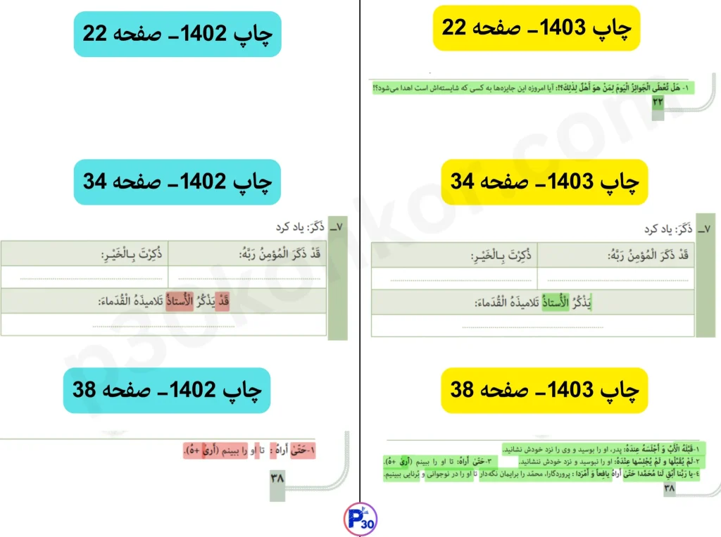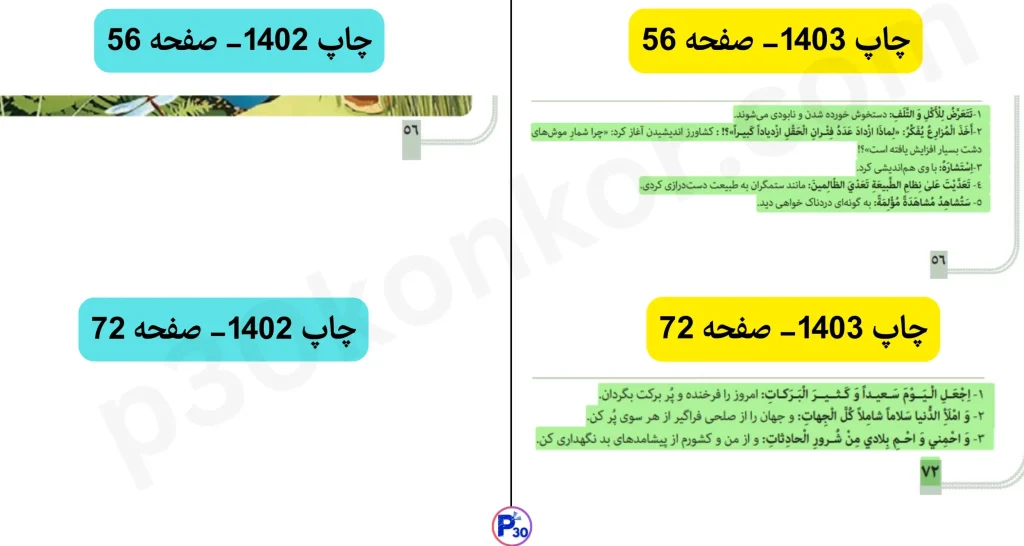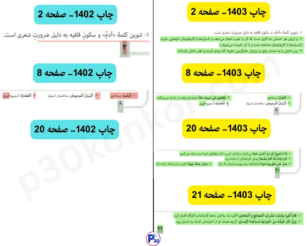 تغییرات کتاب عربی انسانی دوازدهم چاپ 1403 نسبت به چاپ 1402 (برای کنکور و امتحان نهایی 1404)