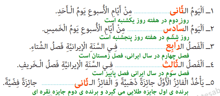 جواب تمرین صفحه ۲۶ عربی دهم انسانی