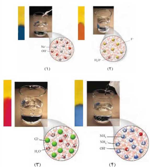 پ) خاصیت بازی محلولهای 1 و 4 را به کدام یون نسبت میدهید؟ چرا؟