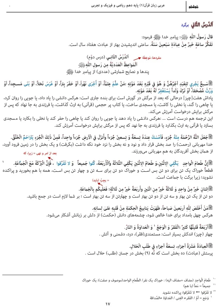 - معنی و ترجمه درس دوم عربی دهم تجربی و ریاضی صفحه ۱۶ و ۱۷