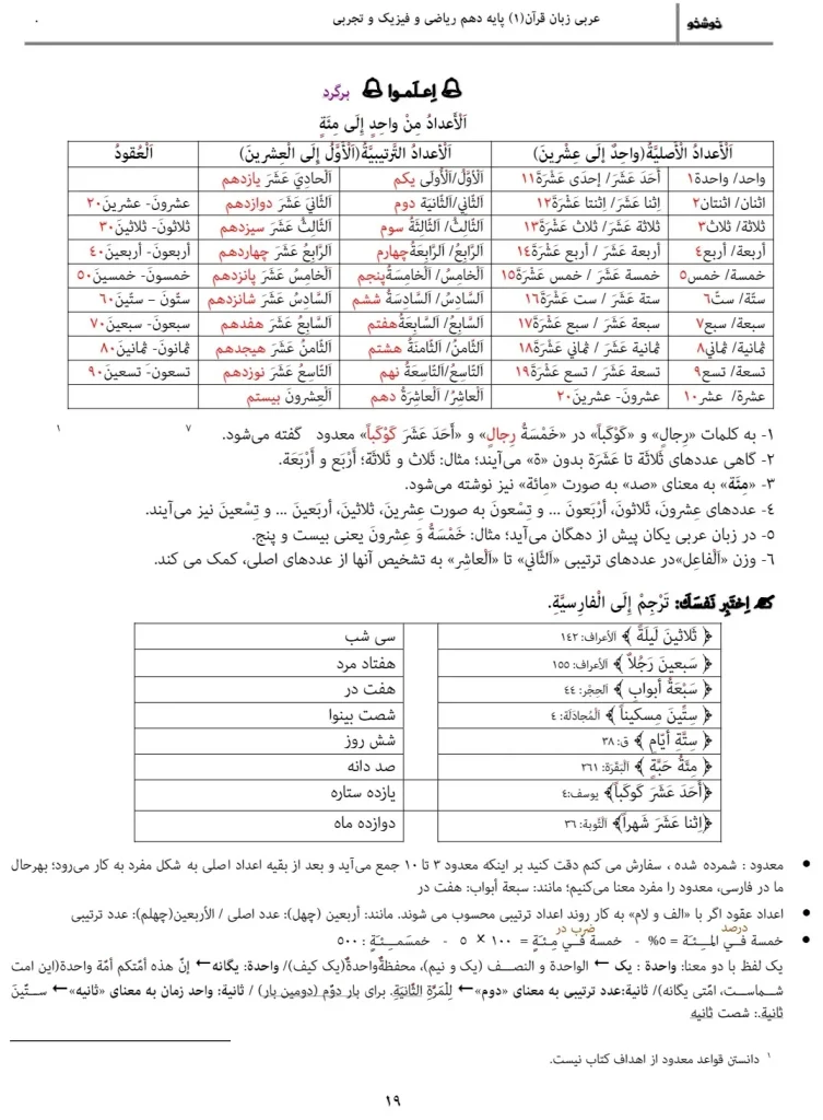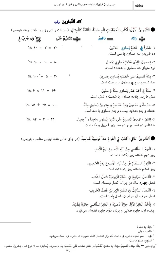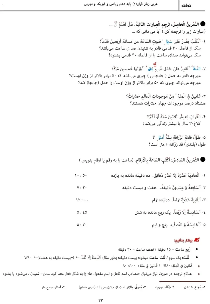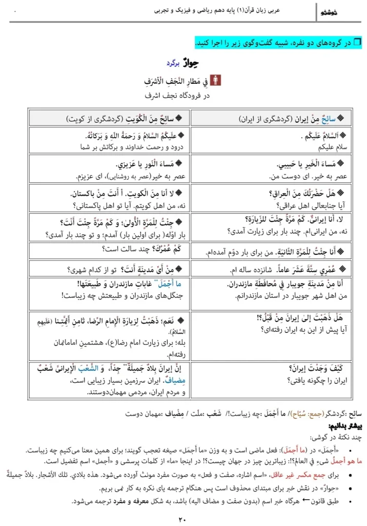 - جواب ترجمه به فارسی صفحه ۲۰ عربی دهم تجربی و ریاضی