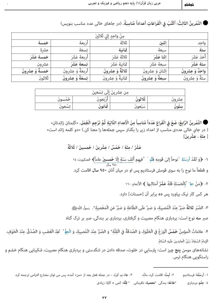 - جواب و حل تمرین های درس دوم عربی دهم تجربی و ریاضی صفحه ۲۲، ۲۳، ۲۴، ۲۵ و ۲۶