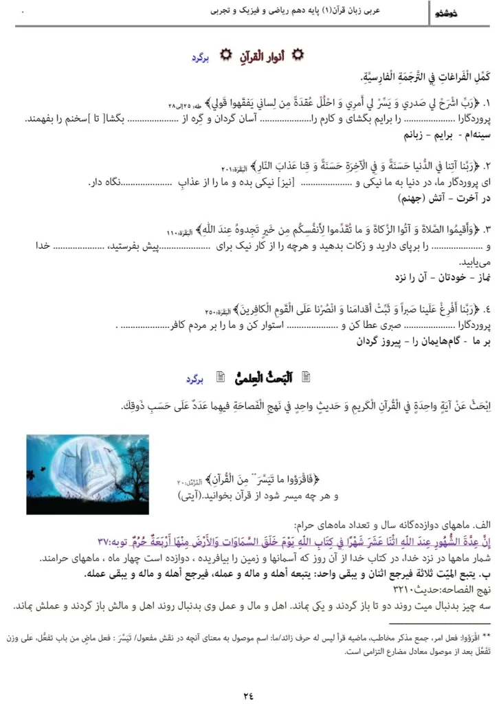 - انوار القرآن درس دوم عربی دهم تجربی و ریاضی صفحه 27